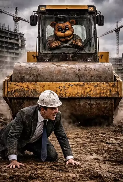 Terror in the construction industry. Freddy Fazbear is attacking contractors with a steamroller! #freddyfazbear #construction #monster #animatronic #build @TerrorReal