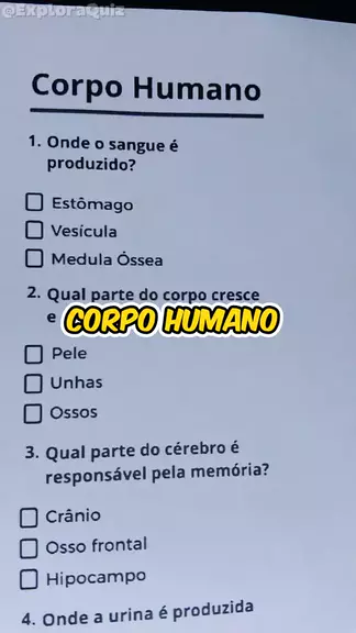 Quiz do Corpo Humano #quiz #corpohumano #perguntas #medicina