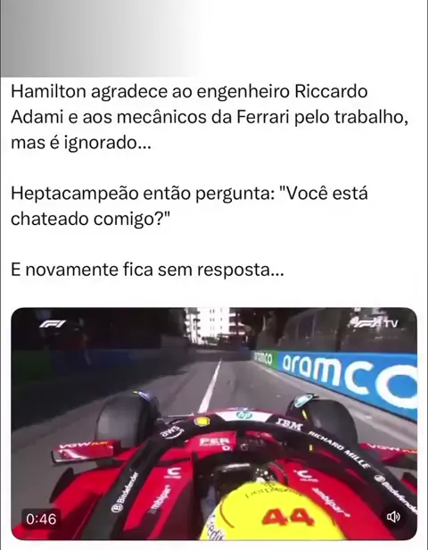 o que você acha sobre isso? será que foi uma falha no rádio? ou o clima entre Hamilton e seu engenheiro não tá nada bom? ou será que o engenheiro foi ao banheiro? kkk #FORMULA1 #F1NAVEIA #Hamilton #ferrari