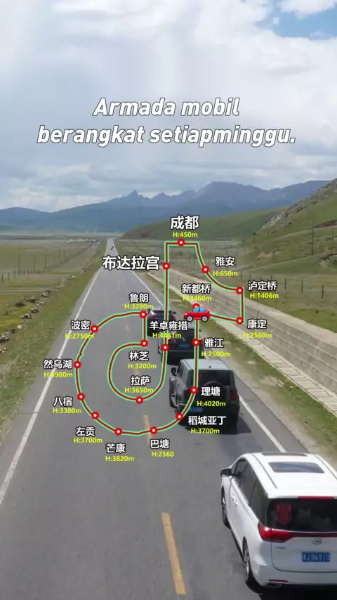 Arahkan peta jalan dari jalur 318 Sichuan-Tibet. Mari kita pergi. Ikuti Ajie untuk melakukan perjalanan dan berkendara sendiri ke Tibet. Anda tidak perlu membuat strategi sendiri. Anda dapat langsung mengambil Mimpi Tibet Anda dan mulai dengan saya. Anda dapat bergabung dengan jalur 318 Sichuan-Tibet dengan mobil tanpa mobil.