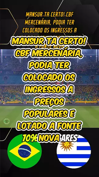 MANSUR TA CERTO! CBF MERCENÁRIA, PODIA TER COLOCADO OS INGRESSOS A PREÇOS POPULARES E LOTADO A FONTE NOVA. #BrasilxUruguai #brasil #eliminatorias #esporteviral #esporte 更多