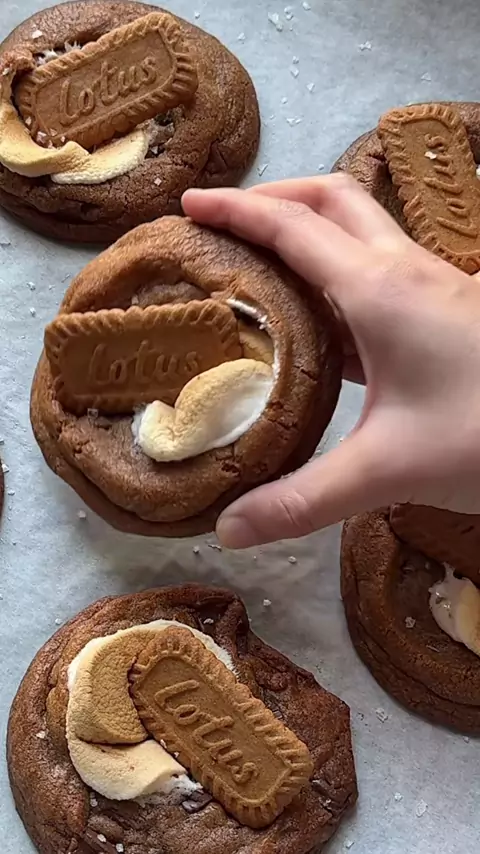 ♡︎ʙɪsᴄᴏꜰꜰ s’ᴍᴏʀᴇs ᴄᴏᴏᴋɪᴇs♡︎ ɪɴɢʀᴇᴅɪᴇɴᴛs - 150g dark brown sugar - 65g sugar - pinch of salt - 115g unsalted butter, browned - 1 egg - 1/2 tsp vanilla extract - 1/2 tsp espresso - 185g all-purpose flour - 1/2 tsp baking soda - 100g chocolate - biscoff cookies - marshmallows (recipe adapted from audreysaurus)##bake#baking#BakeWithMe#baketok#Recipe#cookies#biscoff#smores#chocolate