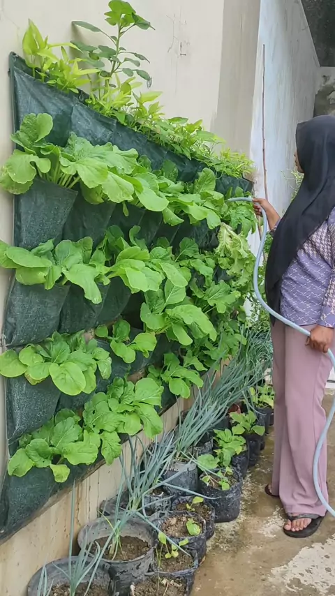 cara menyiram tanaman dalam wall planter bag #UmrahBarengSnack