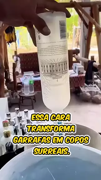 Esse cara transforma garrafas em copos surreais! 😯 #garrafas #obradearte #arte #viralvideo #fatosinteressantes