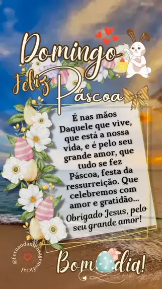 🕊️Jesus Cristo ressuscitou e vive dentro do coração de cada um de nós. Bom dia, Feliz Páscoa!🙌💞☀️ . . . Me siga aqui Kwai 🥰 Estou tbm no Instagram 🌼 👉 Fernanda mensagem oficial ❤️ #bomdia #domingo #pascoa #kwai More