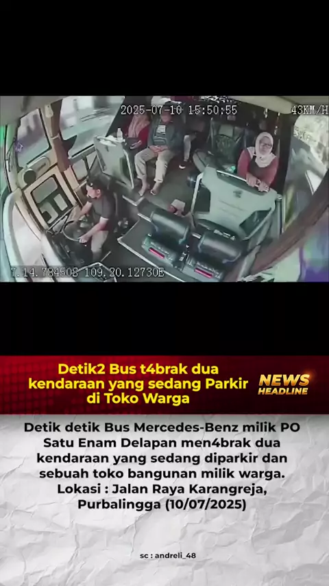 detik-detik bus t4brak dua kendaraan yang sedan parkir di warung milik warga #kecelakaan #insiden #kejadian #peristiwa #news