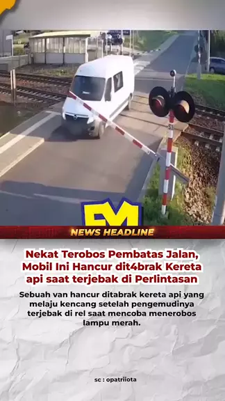 nekat trobos pembatas jalan , mobil ini jadi hancur ketabrak kereta saat terjebak di rel #insiden #kejadian #mobil #kereta #rel