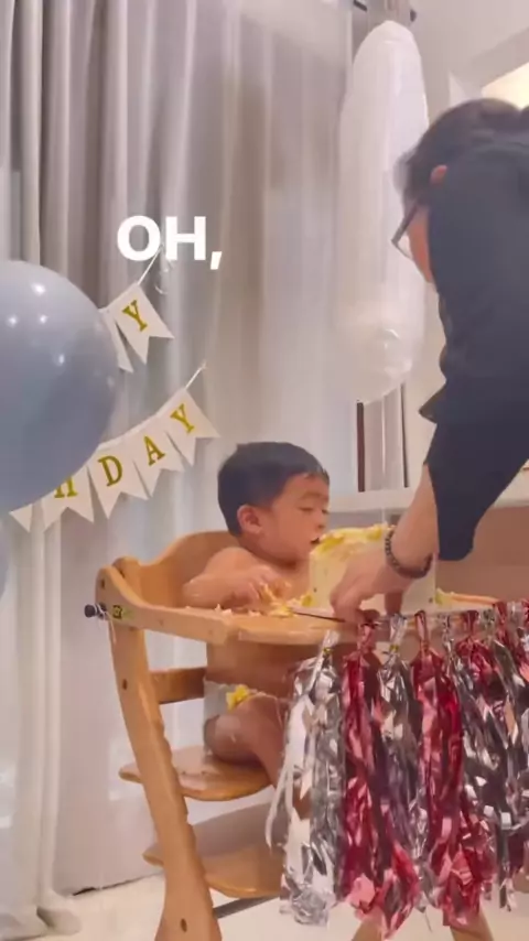 Smashing cake for the first time and it feels good 😆#firstbirthdayboy
