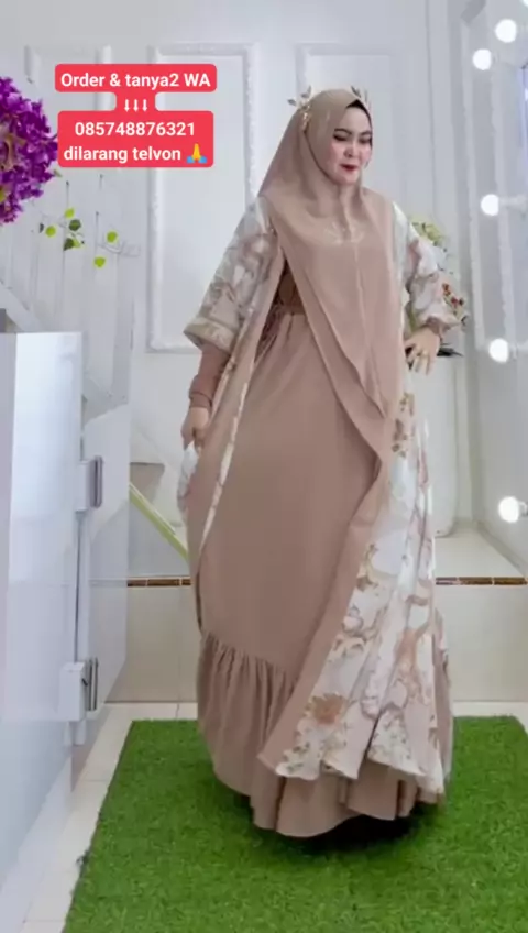 Dijah 740 dijahBaju #ceruty babydoll polos , iiner hygate, Bagian dada dan tanngan jersy ada di lengan #Busui , Kancing tangan, Pinggang karet, fit XL, LD115 PJ145 Lebar rok bawah 4,5 meter Khimar Khimar ceruti 2 lapis panjang depan 90 belanga 120 model dengan Sarwoski Dijah + cardigan bahan ceruty babydoll kembang Harga : 445rb Ready 5 april Order & tanya2 WA β¬β¬β¬ 085748876321 dilarang telvon π