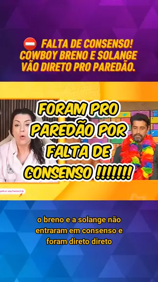 Falta de consenso! Cowboy Breno e Solange no paredão. Fonte Internet #bbb26 #fofoca #BomPraKWAI