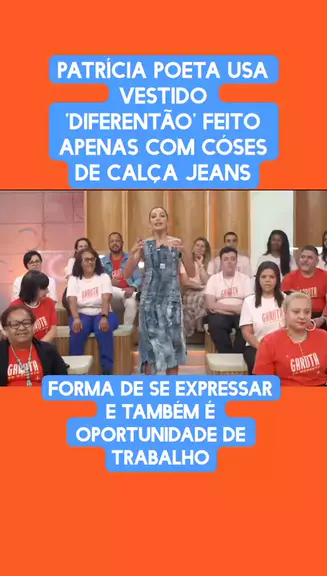 Patrícia Poeta usa vestido 'diferentão' feito apenas com cóses de calça jeans. #ultimasnoticias #famosos #celebridades #patriciapoeta
