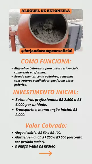 IDEIA PARA UM NEGÓCIO | ALUGUEL DE BETONEIRA #maisviews #rendaextra #dinheiro #negocio #empreendedorismo Más