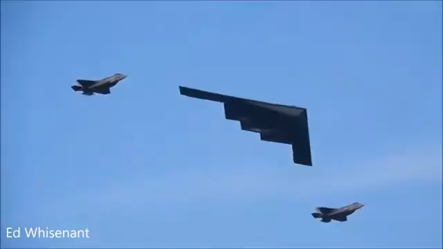 Bombardeiro B-2 Spirit escoltado por 2 caças F-35 🇺🇸