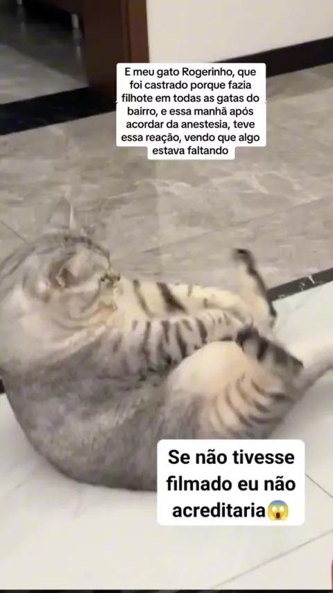 Reação do gato quando descobre que não é mais macho #gato #castrado #SupresaDePáscoaKwai #cats #operação
