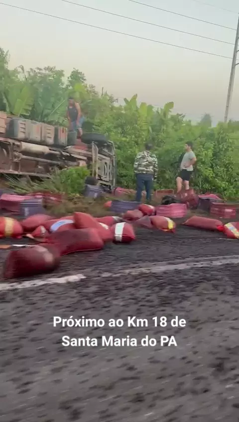 acidente espalha carga de açaí na BR região de Santa Maria do Pará
