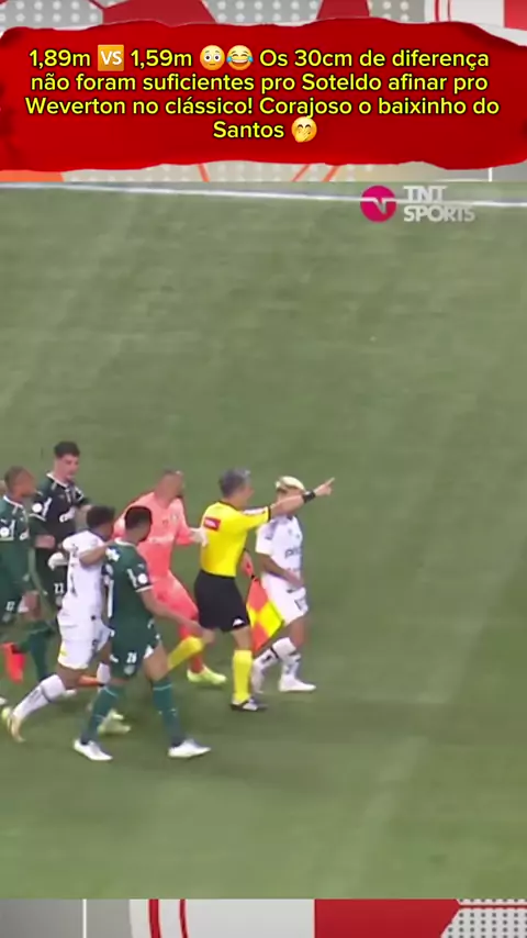 1,89m 🆚 1,59m 😳😂 Os 30cm de diferença não foram suficientes pro Soteldo afinar pro Weverton no clássico! Corajoso o baixinho do Santos! #sportsnews