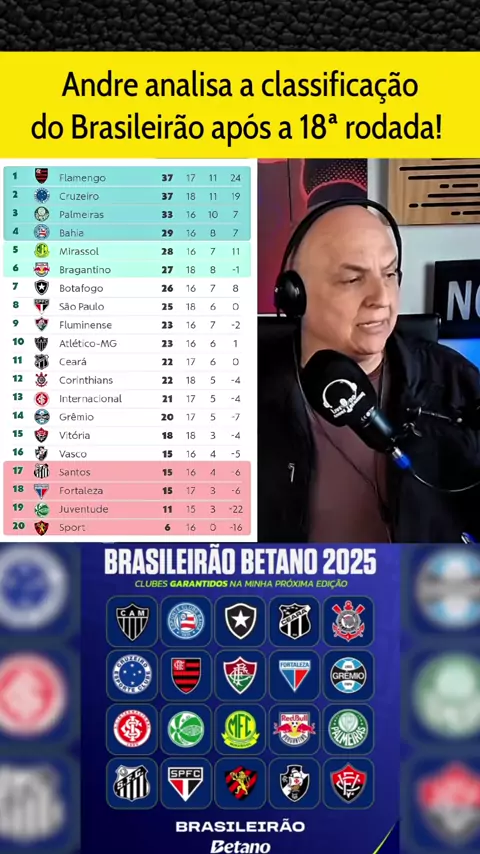 Andre analisa briga pelo titulo e rebaixamento no Brasileirão apos a 18ª rodada!! #botafogoxcruzeiro #FLAMENGO #palmeiras #brasileirão2025 #esporteviral