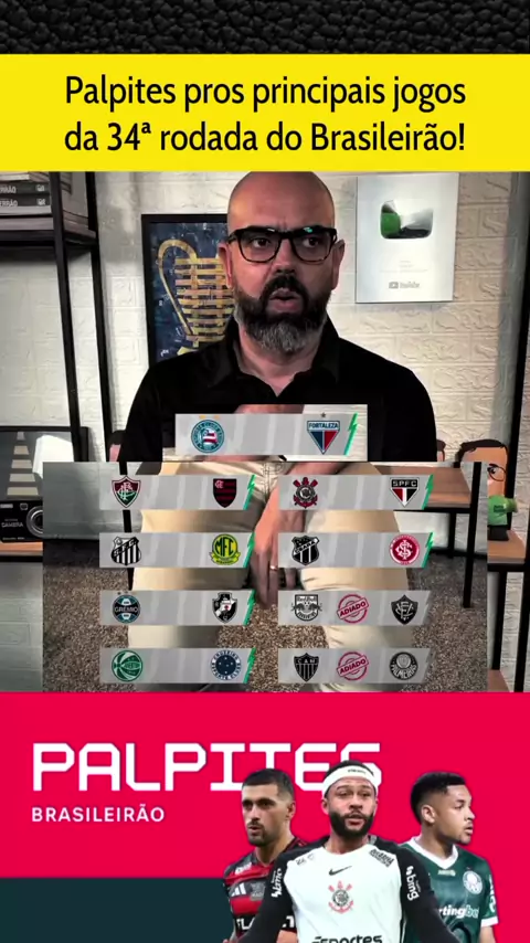 Palpites jogos restantes da 34ª rodada do Brasileirão: Fluminense x Flamengo, Corinthians x Sao Paulo, Bahia x Fortaleza, Gremio x Vasco, Santos x Mirassol, Palmeiras x Vitória! #fluminensexflamengo #CorinthiansxSãoPaulo #GrêmioxVasco #brasileirão2025 #DesafiosKwaiCut