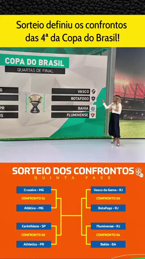 Os confrontos das 4ª de final da copa do Brasil, Cruzeiro x Atlético MG, AthléticoPr x Corinthians, Vasco x Botafogo, Fluminense x Bahia!! #atleticomgxcruzeiro #CorinthiansxAthleticoPr #vascoxbotafogo #copadobrasil #esporteviral