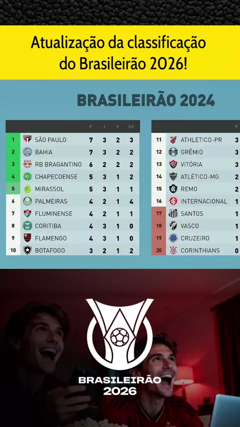 Atualização da classificação do Brasileirão 2026! #saopauloxgremio #vascoxbahia #MirassolxCruzeiro #brasileirão2026 #esporteviral