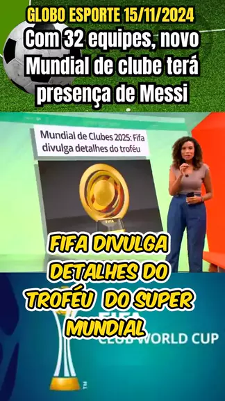 Globo Esporte 15/11/2024 Com 32 equipes, novo Mundial de clube terá presença de Messi Fofa divulga imagens do troféu do Super Mundial de clubes #Supemundial #fifa #futebol #esporteviral