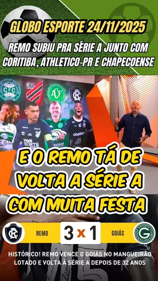 Globo Esporte 24/11/2025 remo subiu pra série a junto com coritiba, athletico-pr e chapecoense Remo venceu o Goiás e subiu pra série a #Desafios11 #BrasileirãoSérieB #SérieB2025 #RemoxGoias #esporteviral