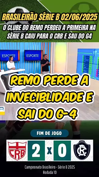 Brasileirão série B 02/06/2025 o clube do remo perdeu a primeira na série b caiu para o crb e sau do g4 CRB X Remo #SérieBNoKwai #SérieB2025 #BrasileirãoSérieB #CRBxRemo #esporteviral