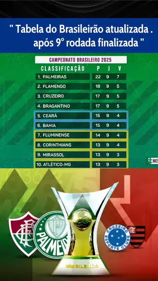 tabela do Brasileirão atualizada após 9° rodada finalizada. #brasileirão2025 #tabela #rodada9 #kwaifutebol #esporte