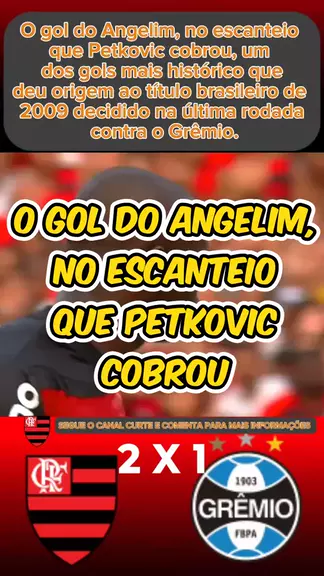 O gol do Angelim, no escanteio que Petkovic cobrou, um dos gols mais histórico que deu origem ao título brasileiro de 2009 decidido na última rodada contra o Grêmio. #Brasileirão2009 #rodada38 #flamengoxgremio #vamosflamengo