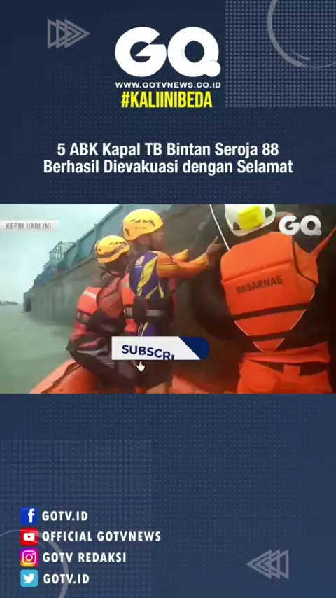 GOTVNEWS, Anambas – Tim SAR gabungan berhasil evakuasi lima ABK TB Bintan Seroja 88 yang tenggelam akibat dihantam ombat, di Perairan Pantai Padang Melang Jemaja, Kabupaten Anambas