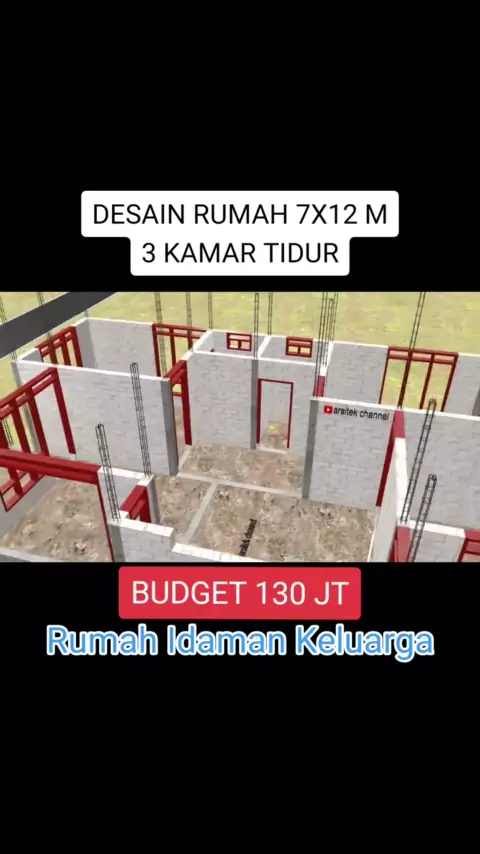 Membalas @watitaichng desain rumah idaman 7x12 m dengan 3 kamar tidur #desainrumah #desainrumahminimalis