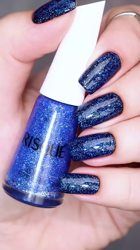 A combinação do esmalte Azul Royal da Impala com o glitter As Mil Purpurinas da Risqué fica linda! 💙 Eu fiz um vidrinho já com a mistura dois dois, para deixar o azul com efeito tint e diminuir uma camada na hora da aplicação. E eu prefiro aplicar sempre essa misturinha sobre outros esmaltes, nunca apliquei direto nas unhas 💙 Vocês ja usaram essa combinação? #esmalte #unhas #azul #glitter