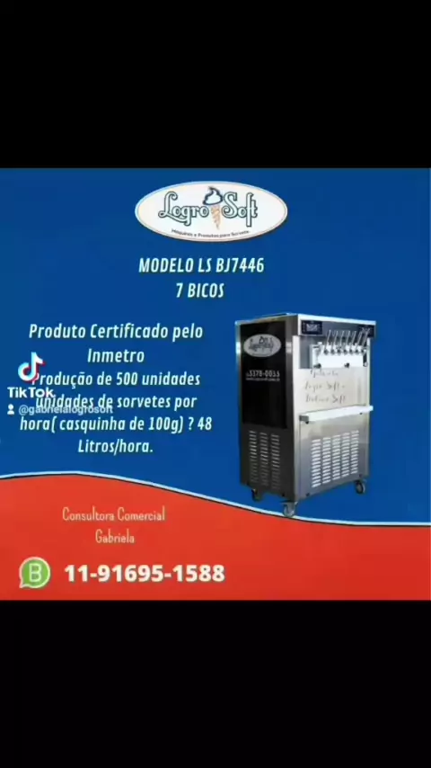 Olá , sou Gabriela consultora comercial da Logro🍦Soft e Italian Soft . Chegou o momento de ter a sua maquina de sorvete expresso e açaí . Maquinas novas a partir de R$5.000,00 de entrada e o restante no boleto em até 12x sem juros , ou pagamento em até 12x no cartão sem juros , e avista tem super desconto . Frete grátis para todo o Brasil . Assistência técnica a nível Brasil. Reposição de peças imediata com menor custo . 11-91695-1588