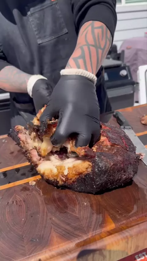 Parte 2, fumando um osso de 23 libras no peito de açougueiros barbudos Este peito levou 18 horas para fumar no meu Grills antes de eu descansar por quase 2 horas. 225 ° foram as primeiras 14 horas e 275 ° uma vez que eu o embrulhei e fui mais 4 horas para a sensibilidade da sonda. Estes foram defumados com pelotas de bordo Traeger / Louisville Slugger. Eu rastreei as temperaturas internas com o meu Bloco para acompanhar as diferentes seções durante o cozimento. Um cozinheiro tão divertido e sat...