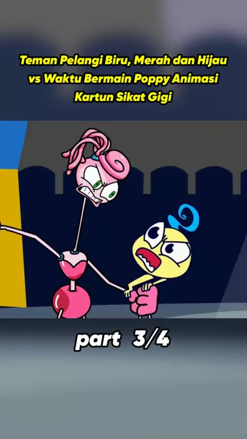 Teman Pelangi Biru, Merah dan Hijau vs Waktu Bermain Poppy Animasi Kartun Sikat Gigi