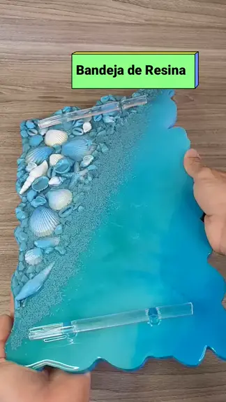 Hoje fiz essa bandeja de Resina Epoxi, o tema é mar e fiz tudo em tons azuis. Gostaram? 🙈💙