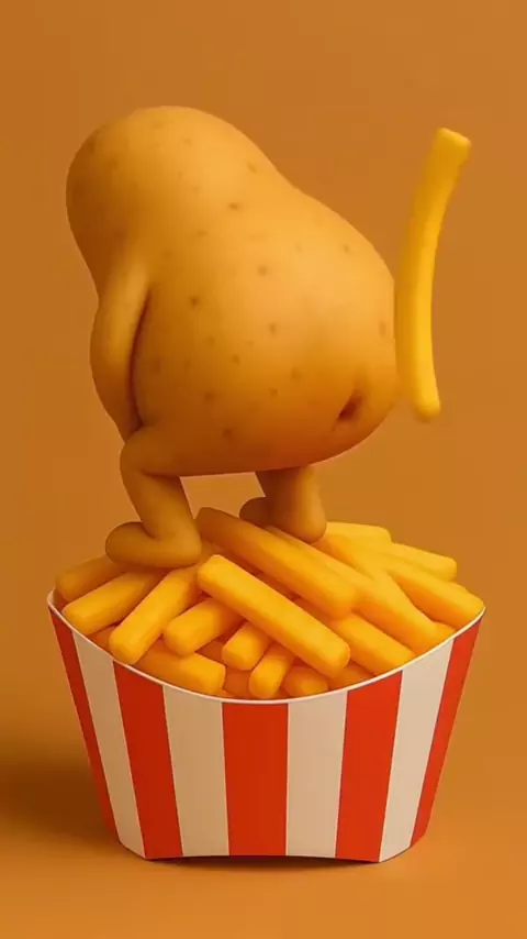 When your snack has more personality than you do 😂 Potato munching fries, chicken dancing with drumsticks, orange sipping soda, and tomato crying into ketchup—this is *food art* meets *viral chaos*! 🍟🍗🥤🍅 Tag a friend who needs a laugh (and maybe a snack). #FoodArt #CreativeDesign #ViralContent #FunnyFood #SnackTime "