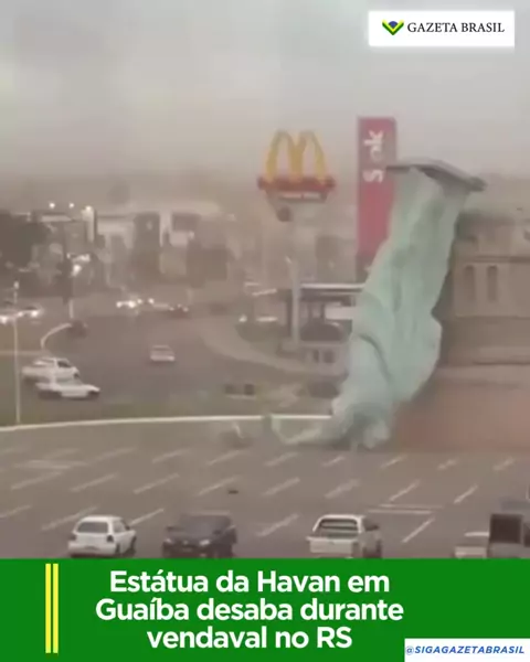 Um monumento que simula a Estátua da Liberdade, localizado em frente à loja Havan de Guaíba, na Região Metropolitana de Porto Alegre, desabou na manhã desta segunda-feira (15) em decorrência do forte temporal que atinge a região. A informação foi confirmada pelo prefeito de Guaíba, Marcelo Maranata, que também assegurou que, apesar do incidente, não houve feridos. A escultura, que se tornou um símbolo da rede de lojas, possui uma altura total de 35 metros. A falha estrutural ocorreu na parte ...