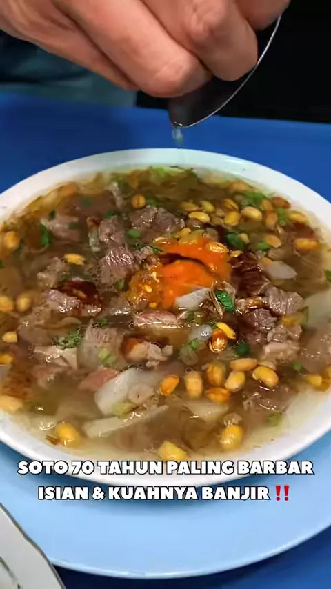 Soto bandung yang kuahnya banjir dan isiannya melimpah ruah, ternyata soto bandung karang anyar ini udah ada dari tahun 1955 loh! Kalian harus racik dulu kuahnya agar lebih keluar rasanya, kasih perasan jeruk yang banyak biar makin seger! Lokasi : Soto Banjir Karang Anyar H. Endang 1955 Jl. Astana Anyar No.43, Karanganyar, Kec. Astanaanyar, Kota Bandung, Jawa Barat 40241 #gedeinperut #gedeinperutbandung #kulinerbandung #bandungfoodies #makandibandung