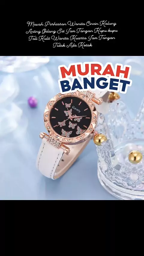 6 Pcs Mewah Perhiasan Wanita Cincin Kalung Anting Gelang Set Jam Tangan Kupu-kupu Tali Kulit Wanita Kuarsa Jam Tangan Tidak Ada Kotak#acessorioswanita