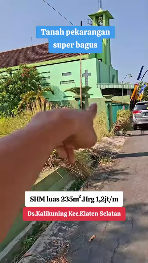 Dijual tanah pekarangan super bagus SHM luas 235m² bisa perluasan (dibeli semua) luas 470m²/950m².Hrg 1,2jt/m.Lokasi Ds.Kalikuning Kec.Klaten Selatan Kab.Klaten - View hamparan sawah - Samping GKJ Jomboran - 50m dari jalan raya DPU kabupaten ruas Klaten-Rowo Jombor - 100m sebelah baratnya pertigaan Kalikuning - 1,5km RSUD Bagas Waras - 3-4km terminal/stasiun Klaten WA 0857 2779 6313 #hobimakelar #tanahpekaranagan #hkbimakelarklaten #tanahbagus #klaten