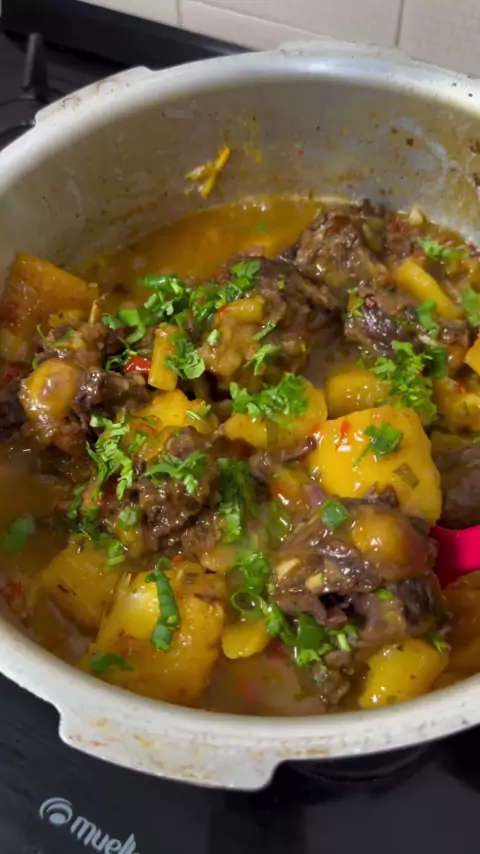 Eu já acordo cedo comendo rabada com mandioca 😋 Vcs tb? #explorar #comida #rabada #carne #chefanaprado #
