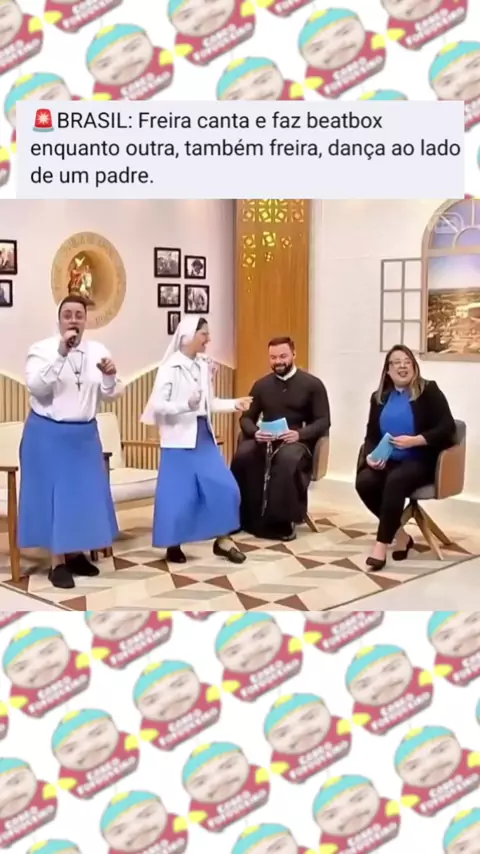Freira canta e faz beatbox enquanto outra, também freira, dança ao lado de um padre. #freira #humor #fofoca #meme #viraliza