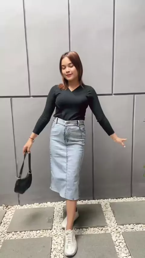 Tinggal nunggu dijemput pangeran nih🤭 #skirts #skirtoutfits #rokspan #jeanskirt #jeansoutfit