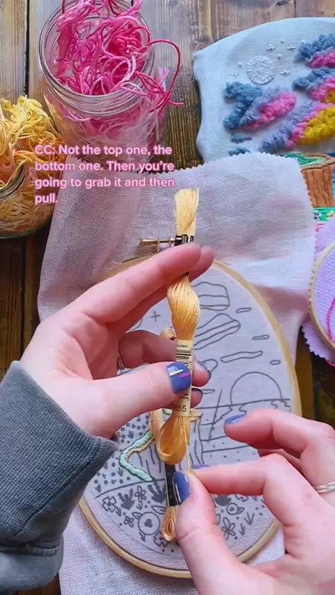 #embroiderytips: Prevent skein tangles/chaos by pulling thread from the bottom! Follow for more #handembroidery tips & tutorials! βοΈπ