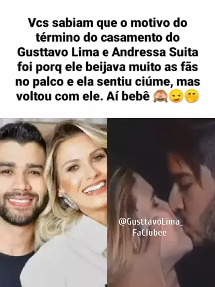 Vcs sabiam que motivo do término do casamento do Gusttavo Lima e Andressa Suita foi por que ele beijava muito as fãs no Show, e ela sentiu ciúmes , mas voltou com ele. Aí bebê 🙈😏😏😍 #gusttavolima #andressasuita #show #FA #musica