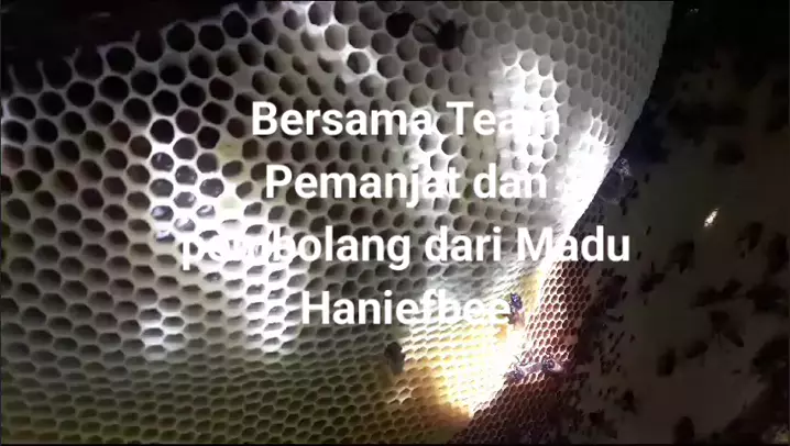 bersama team pemanjat dan pembolang madu haniefbee sedang melakukan proses pemanenan madu hutan odeng dari pohon Dengan ketinggian 25 meter. Madu hutan odeng Haniefbee madu murni kualitas super duper tinggi. Aman - Amanah - Murni - Berkah #haniefbee #madumurni #maduasli