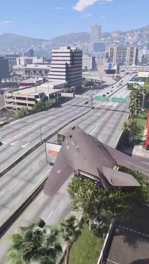 Pesawat tempur siluman F117 Amerika terbang pada ketinggian yang sangat rendah dan mendarat di pantai # Plane # F117