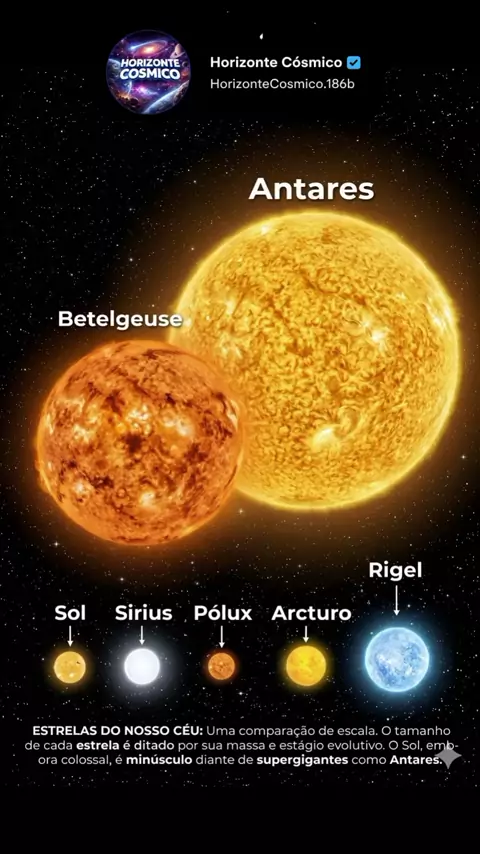 Onde o Sol é apenas um grão de areia! ☀️➡️🌌✨ Você já se sentiu pequeno hoje? 🤔 Esta comparação de escala mostra o Sol ao lado de algumas das maiores estrelas do nosso céu. Enquanto o Sol é vital para nós, supergigantes como Antares e Betelgeuse são tão imensas que poderiam engolir quase todos os planetas do nosso sistema de uma só vez! 🤯🪐 O universo é um mestre em escalas. Cada ponto de luz que vemos à noite pode ser um gigante bilhões de vezes maior que o nosso lar.