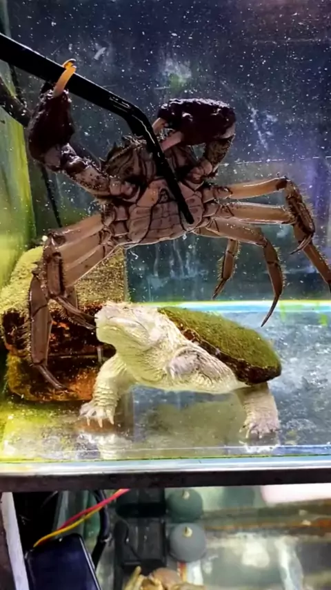 Coloque caranguejos no tanque para tornar a tartaruga menos solitária e ter amigos! Mas infelizmente não considera caranguejos como amigos! Especialmente o caranguejo é muito forte e não um caranguejo normal, parece que a tartaruga cometeu um erro ao tocar o caranguejo # viral # trending # # # # fish # turtle # turtles # crab # crabs # fish # evilfish # fish _ vswhat # シ